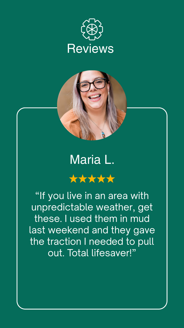 Reinforced anti-slip studs bite into snow, mud, sand, and icy roads to prevent tire spinning and help your vehicle break free quickly. Perfect for winter driving and off-road emergencies.