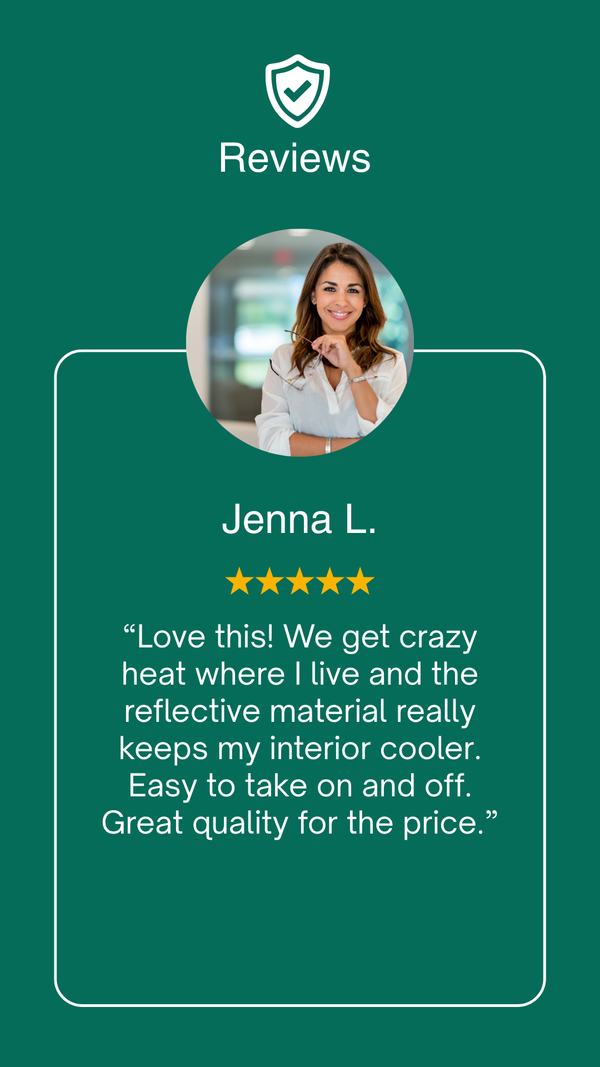 The aluminum-coated exterior reflects sunlight to prevent intense heat, fading paint, and cracked dashboards—keeping your car cooler all day.